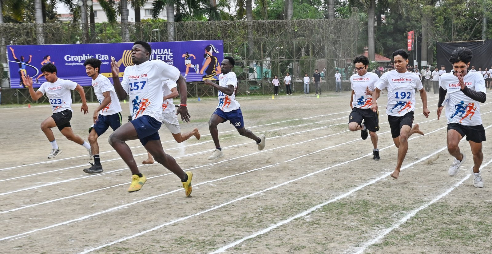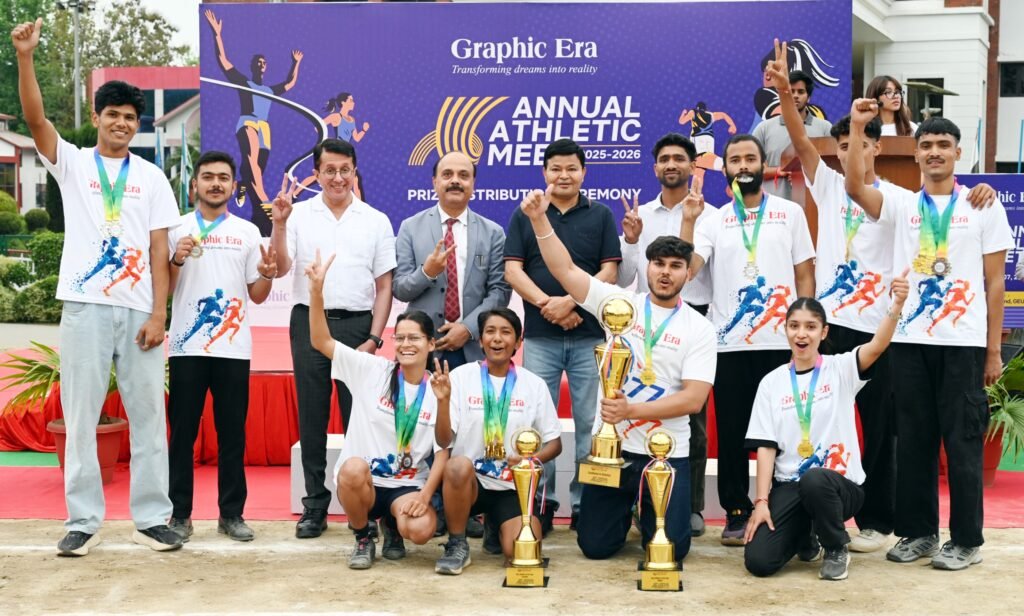 ग्राफिक एरा डीम्ड यूनिवर्सिटी में वार्षिक एथलेटिक मीट 2026 में ग्राफिक एरा डीम्ड यूनिवर्सिटी से 3272 छात्र छात्राओं और ग्राफिक एरा हिल यूनिवर्सिटी से 5539 छात्र छात्राओं ने जोश, ऊर्जा और अपनी खेल प्रतिभा का प्रदर्शन किया। सात दिन चली इस एथलेटिक मीट में ग्राफिक एरा डीम्ड यूनिवर्सिटी में बेस्ट एथलीट बॉयज़ श्रेणी का खिताब बीटेक के छात्र जेम्स एवर को मिला और गर्ल्स श्रेणी में बीसीए की छात्रा प्रेमा थापा ने यह खिताब अपने नाम किया। बेस्ट डिपार्टमेंट का खिताब बीसीए विभाग ने सर्वाधिक स्वर्ण पदक जीतकर अपने नाम किया। ग्राफिक एरा हिल यूनिवर्सिटी में बेस्ट एथलीट का खिताब बॉयज़ श्रेणी में बीवोक के छात्र विजय नेगी ने जीता, गर्ल्स श्रेणी में बीबीए की छात्रा कृतिका ने यह खिताब अपने नाम किया। बेस्ट डिपार्टमेंट का खिताब मैनेजमेंट विभाग ने कई स्वर्ण और रजत पदक जीतकर अपने नाम किया।