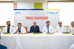 ग्राफिक एरा इंस्टीट्यूट ऑफ़ मेडिकल साइंसेज में दुनिया की नवीनतम तकनीकों और बेहतरीन विशेषज्ञों के कारण एक के बाद एक नए कीर्तिमान स्थापित हो रहे हैं। इससे पहले ग्राफिक एरा अस्पताल के विशेषज्ञ चिकित्सक ब्रेन में पेसमेकर लगाने, जटिल मामले में छोटे बच्चों को तीसरा पेसमेकर लगाने, बिना ऑपरेशन हार्ट के दो वाल्व एक साथ बदलने, बिना ऑपरेशन अवरुद्ध आहार नली खोलने, हड्डी को काटे बिना करीब ढाई इंच के चिरे के जरिए ओपन हार्ट सर्जरी करने जैसे कीर्तिमान स्थापित कर चुके हैं। पत्रकार वार्ता में ग्राफिक एरा अस्पताल के निदेशक डा. पुनीत त्यागी, चिकित्सा अधीक्षक डॉ गुरदीप सिंह झीते, डीन डॉ एस एल जेठानी, सीओओ अतुल बहल भी मौजूद रहे।