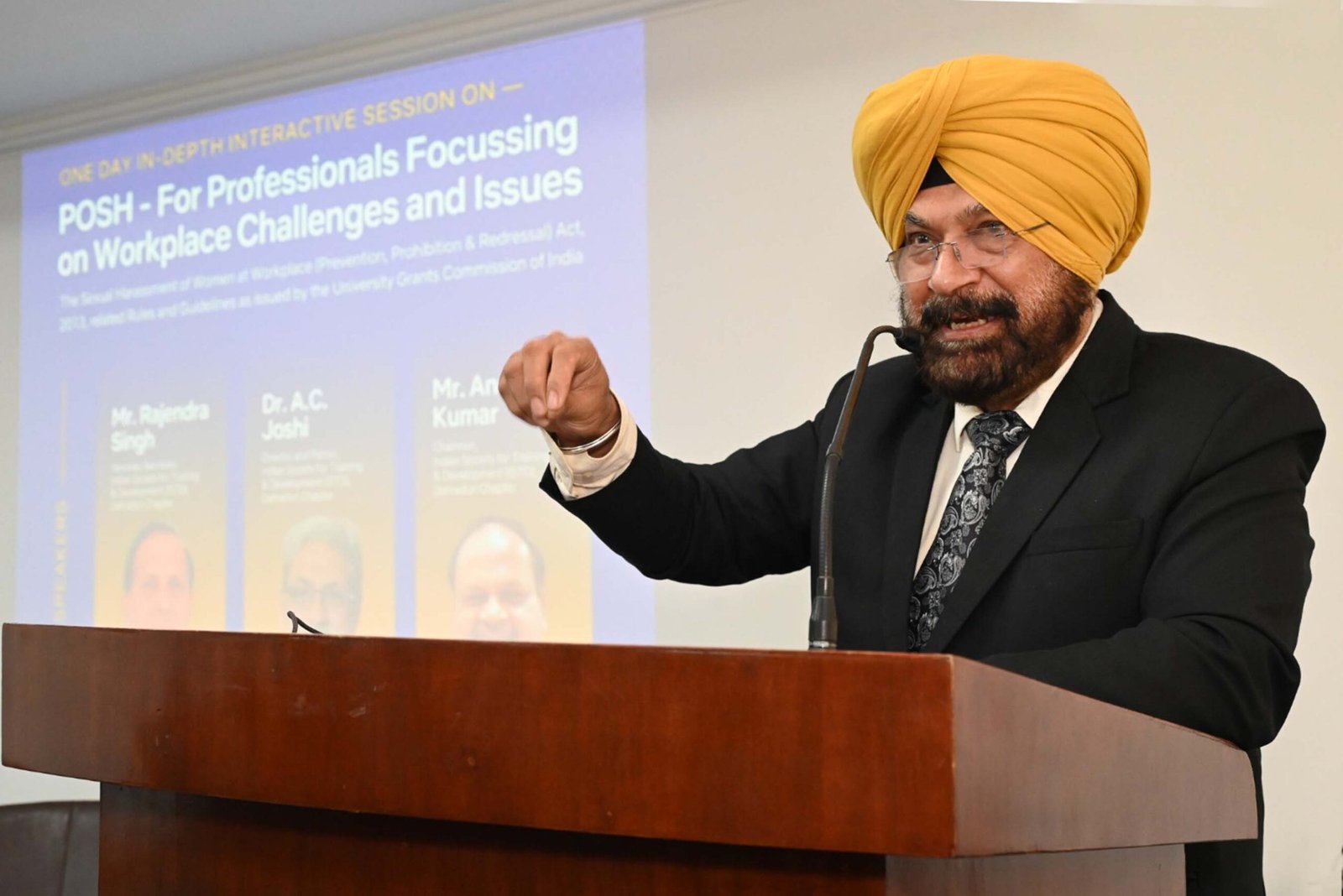 आज ग्राफिक एरा डीम्ड यूनिवर्सिटी में ‘पौष कानून और कार्यस्थल की चुनौतियां’ विषय पर सत्र का आयोजन किया गया। सत्र को संबोधित करते हुए मुख्य अतिथि इंडियन सोसाइटी फॉर ट्रेनिंग एंड डेवलपमेंट (आईएसटीडी) देहरादून चैप्टर के निदेशक डा. ए. सी. जोशी ने कहा कि पौष अधिनियम केवल एक कानूनी प्रावधान नहीं बल्कि कार्यस्थल पर सुरक्षा, सम्मान और समानता सुनिश्चित करने की एक मजबूत पहल है, जिसे हर व्यक्ति को समझना और अपनाना आवश्यक है। उन्होंने प्रेजेंटेशन के माध्यम से पौष से जुड़ी जानकारी दी और ऐसे मामलों से निपटने के उपाय, शिकायत प्रक्रिया और जागरूकता के महत्व पर प्रकाश डाला।