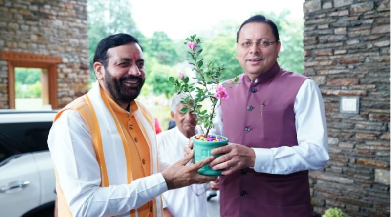 मुख्यमंत्री धामी ने हरियाणा के मुख्यमंत्री नायब सिंह सैनी का किया स्वागत एवं अभिनंदन