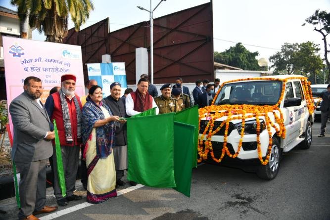 मुख्यमंत्री पुष्कर सिंह धामी ने हंस फाउण्डेशन द्वारा पुलिस विभाग को प्रदान किये गये वाहनों को फ्लैग ऑफ किया