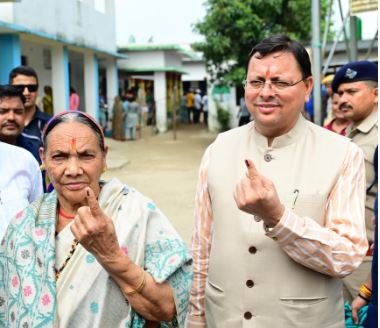 सीएम धामी ने अपनी माताजी के साथ किया मतदान