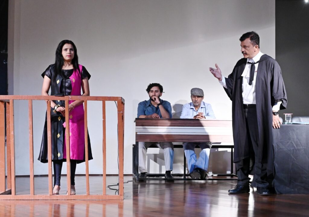 यह नाटक मूल रूप से एनी रेंड की लिखी हुई ’द नाइट ऑफ 16 जनवरी’ का हिंदी रूपांतरण है। इसका अनुवाद लखनऊ के प्रसिद्ध रंगकर्मी गौतम राय ने किया है। इस नाटक को मंजुल मयंक मिश्र ने निर्देशित किया है। उनकी भूमिका केवल निर्देशन तक ही सीमित नहीं रही। उन्होंने सरकारी वकील का दमदार किरदार भी निभाया। सिने कलाकार नवनीत गैरोला ने बचाव पक्ष के वकील की भूमिका किसी मंजे हुए वकील के जैसे पैंतरो के साथ निभाई। नाटक के अन्य पात्रों में सोनिया वालिया ने अभयुक्त प्राची मेहता, प्रताप नंदनी ने गैंगस्टर ताहिर अब्बास, सलमान जैदी ने मकतूल के ससुर सेठ गोकुलदास जलान, प्रियंका सम्मल ने मकतूल की पत्नी निकिता बजाज, सोनिया गैरोला ने जज की किरदार को प्रभावित अंदाज में निभाया। धीरज रावत, रजनी शर्मा, केतन प्रकाश, अमित सेमवाल ने चश्मदीदों की भूमिका से इंसाफ किया।