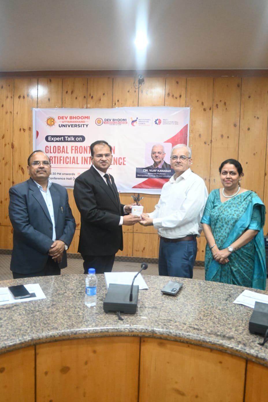 देवभूमि उत्तराखंड विश्वविद्यालय, देहरादून में 10 मार्च 2026 को “ग्लोबल फ्रंटियर्स इन आर्टिफिशियल इंटेलिजेंस” विषय पर एक महत्वपूर्ण विशेषज्ञ व्याख्यान (Expert Talk) का आयोजन किया गया। इस कार्यक्रम का उद्देश्य शिक्षकों और विद्यार्थियों को आर्टिफिशियल इंटेलिजेंस के वैश्विक परिदृश्य, नवीनतम संभावनाओं तथा शिक्षा क्षेत्र में इसके प्रभावी उपयोग के बारे में जागरूक करना था। कार्यक्रम में मुख्य वक्ता के रूप में अमेरिका के बोस्टन स्थित मेट्रोपॉलिटन कॉलेज, बोस्टन यूनिवर्सिटी के एसोसिएट प्रोफेसर श्री विजय कनाबर ने अपने अनुभवों से सभी को रूबरू कराया।