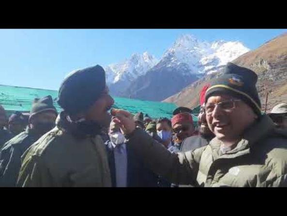 राज्यपाल गुरमीत सिंह और मुख्यमंत्री पुष्कर सिंह धामी सेना के जवानों के साथ दीपावली मनाने के लिए चीन सीमा पर पहुंचे