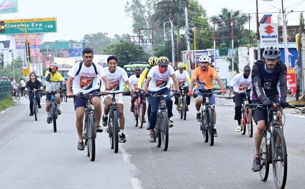 ग्राफिक एरा की साइकिल रैली युवाओं ने दिया एकता व सद्भावना का पैगाम