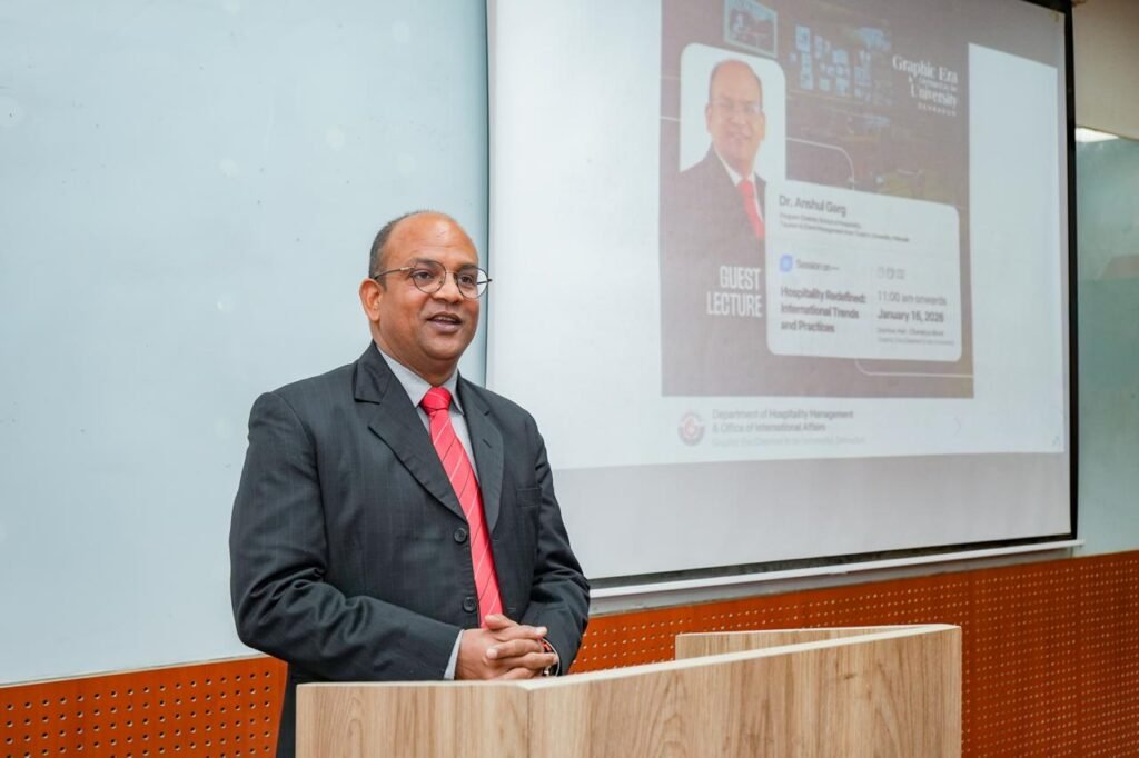 वह आज ग्राफिक एरा डीम्ड यूनिवर्सिटी में हॉस्पिटैलिटी सेक्टर के भविष्य और कैरियर संभावनाओं के विषय में आयोजित संगोष्ठी को संबोधित कर रहे थे। डॉ अंशुल गर्ग ने कहा कि वर्तमान में कई होटलों में रोबोट्स का उपयोग हो रहा है और बहुत जल्द एआई भी अहम भूमिका निभाएगा। उन्होंने कहा कि दुनिया तेजी से बदल रही है और समग्र विकास के लिए बदलते दौर से जुड़े रहना जरूरी है, केवल पुस्तकीय ज्ञान पर्याप्त नहीं है। होटल उद्योग तेजी से विस्तार कर रहा है, जहां कुशल युवाओं के लिए अनेक करियर अवसर मौजूद हैं।