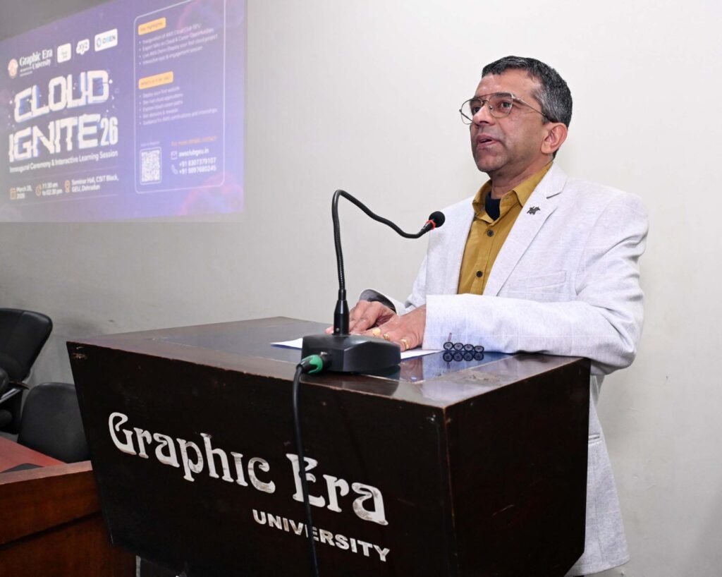 ग्राफिक एरा डीम्ड यूनिवर्सिटी में आज अमेजॉन वेब सर्विसेज का व्यावहारिक प्रशिक्षण देने के लिए क्लाउड इग्नाइट वर्कशॉप का आयोजन किया गया। कार्यक्रम को संबोधित करते हुए डीन ऑफ इंटरनेशनल अफेयर्स डॉ डी आर गंगोडकर ने कहा कि आज के समय में टेक इंडस्ट्री तेजी से बढ़ रही है और इसके लिए युवाओं के लिए किताबी ज्ञान पर्याप्त नहीं है।