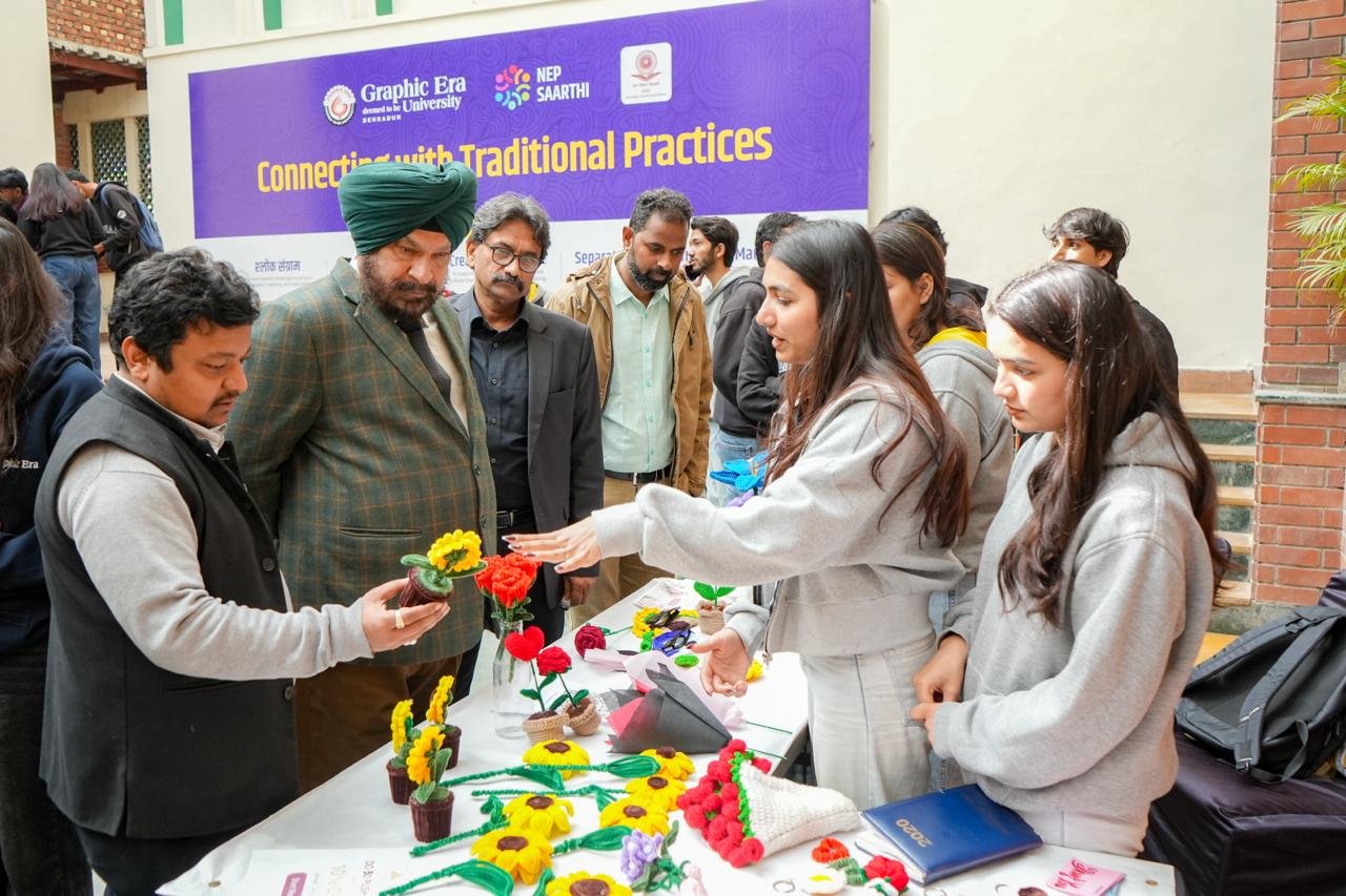 आज ग्राफिक एरा डीम्ड यूनिवर्सिटी में भारतीय ज्ञान प्रणाली के अंतर्गत एनईपी सारथी पहल के तहत विभिन्न गतिविधियों का आयोजन किया गया। कार्यक्रम की शुरुआत कुलपति डा. नरपिंदर सिंह ने केक काटकर की। कार्यक्रम में श्लोक संग्राम, क्रिएट फ्रॉम कल्चर, रूट्स रीलोडेड एवं सेपरेट द मिथ फ्रॉम द मैनुस्क्रिप्ट जैसी विभिन्न गतिविधियों का आयोजन किया गया, जिनमें छात्र छात्राओं ने उत्साहपूर्वक भाग लिया। इन गतिविधियों ने छात्र छात्राओं को सीखने के साथ-साथ भारतीय संस्कृति को बेहतर तरीके से समझने का अवसर दिया।