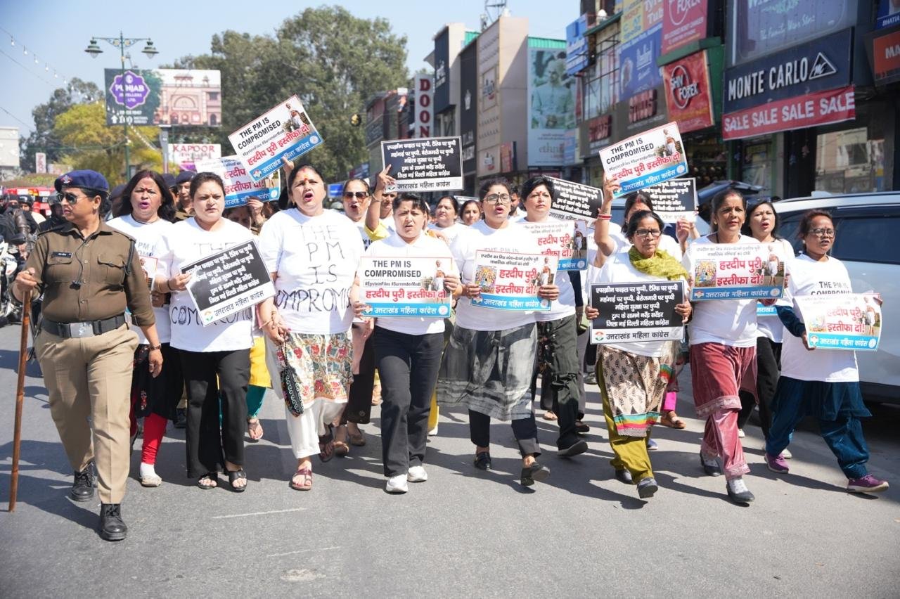प्रदर्शन मार्च में महानगर अध्यक्ष उर्मिला ढौंडियाल थापा, प्रदेश महिला उपाध्यक्ष आशा मनोरमा शर्मा, महासचिव निधि नेगी, सुशीला शर्मा, अनुराधा तिवारी, प्रतिमा सिंह, देवेन्द्र कौर, रेखा ढींगरा, भावना, जिलाध्यक्ष टिहरी आशा रावत, शिवानी थपलियाल, उमा पंवार, अनीता सकलानी आदि अनेक महिला कंाग्रेस पदाधिकारी उपस्थित थे।