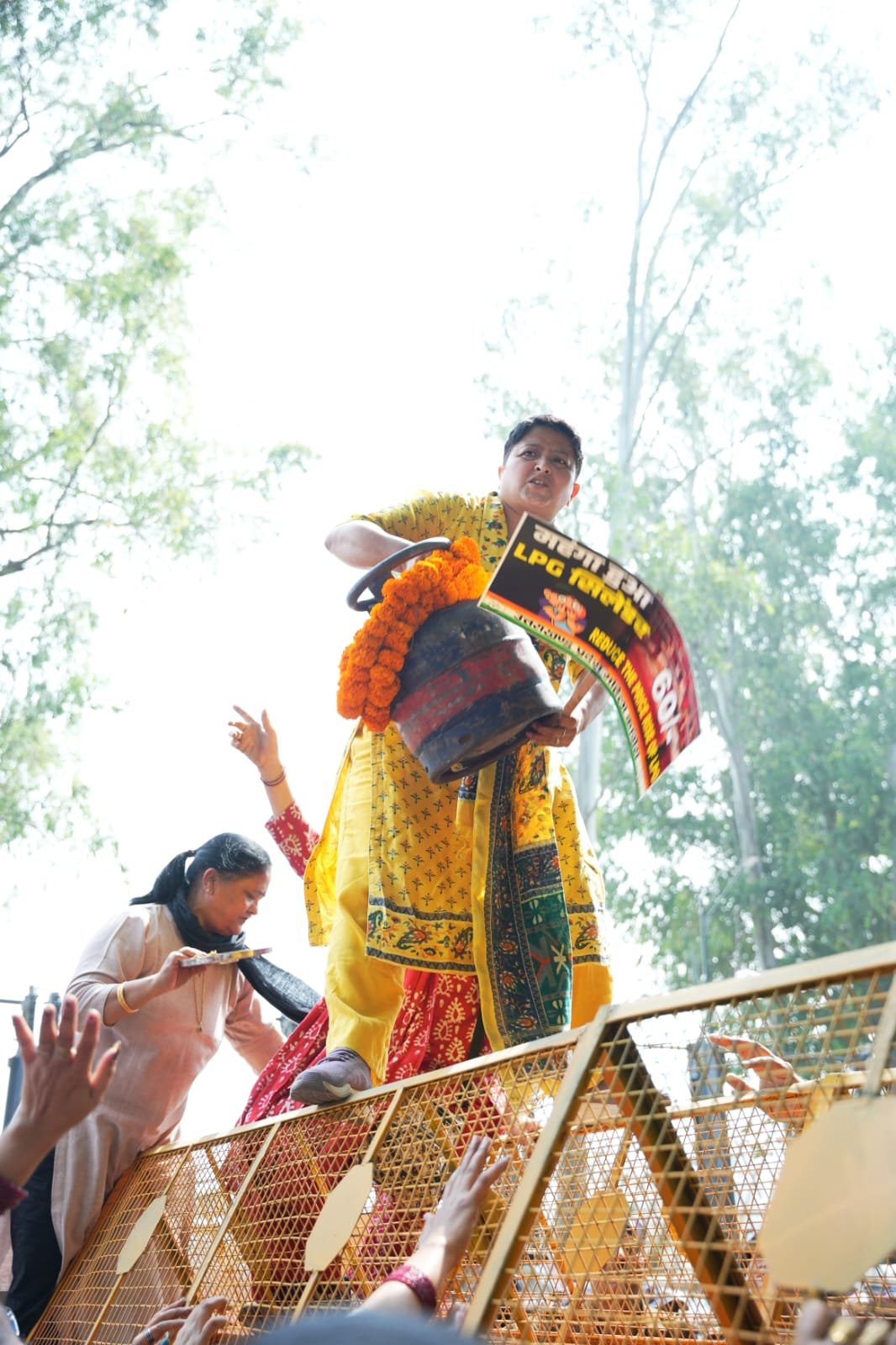 पूर्व निर्धारित कार्यक्रम के तहत महिला कांग्रेस कार्यकर्ताओं ने कांग्रेस मुख्यालय राजीव भवन से सर पर गैस सिलेंडर उठाकर गैस के दाम बढ़ाये जाने के विरोध में नारेबाजी करते हुए भाजपा जिला मुख्यालय की ओर पदयात्रा निकाली। यह पदयात्रा कनक चौक तक पहुंची, जहां पुलिस प्रशासन द्वारा बैरिकेटिंग लगा कर प्रदर्शनकारियों को आगे बढ़ने से रोक दिया गया।