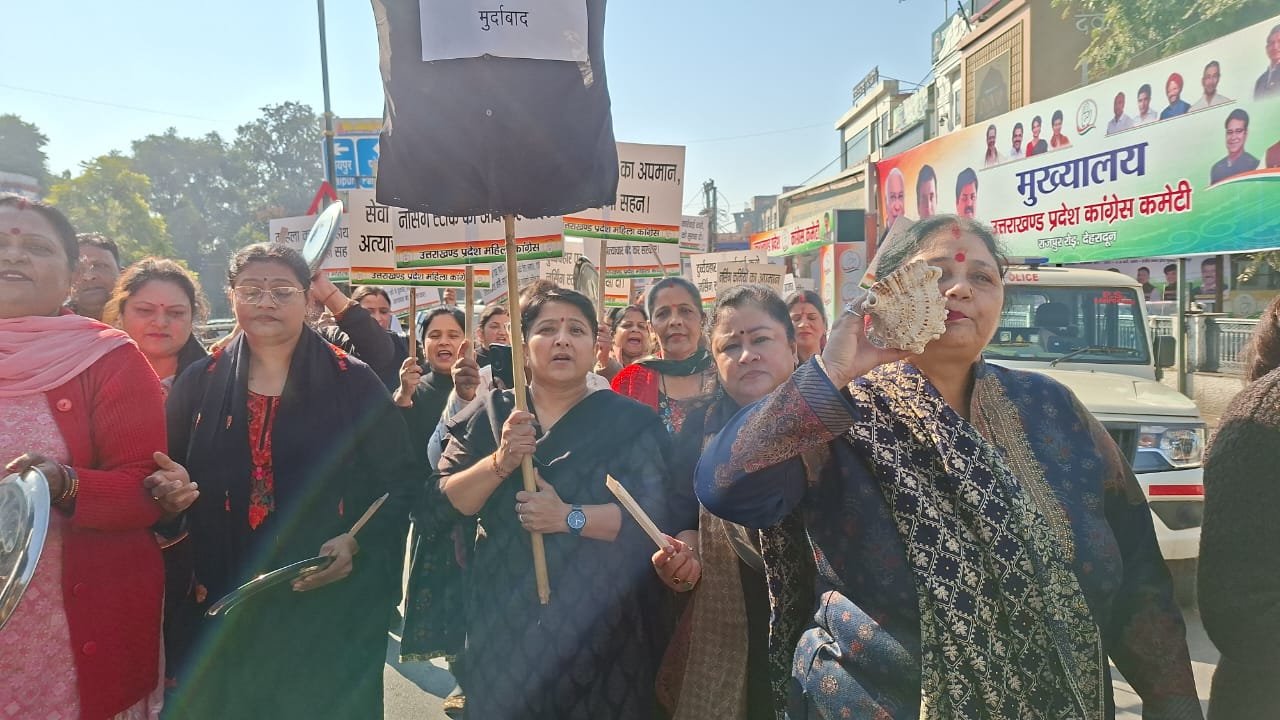 प्रदर्शन को संबोधित करते हुए प्रदेश महिला कांग्रेस अध्यक्ष ज्योति रौतेला ने कहा कि—