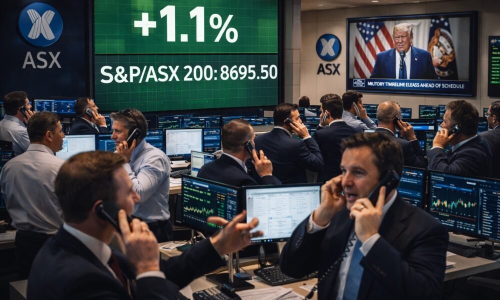 सिडनी – अमेरिकी राष्ट्रपति डोनाल्ड ट्रम्प द्वारा ईरान में जारी संघर्ष को लेकर दिए गए बयानों के बाद निवेशकों में उम्मीद की किरण जगी, जिससे मंगलवार को ऑस्ट्रेलियाई शेयर बाजार में सुधार देखा गया। मिड-आफ्टरनून (दोपहर बाद) तक S&P/ASX 200 इंडेक्स 1.1 प्रतिशत या 96.50 अंक चढ़कर 8695.50 पर पहुंच गया। इस बढ़त के साथ बाजार ने सोमवार की घबराहट भरी बिकवाली में स्वाहा हुई 90 अरब डॉलर की वैल्यू का एक बड़ा हिस्सा वापस हासिल कर लिया।