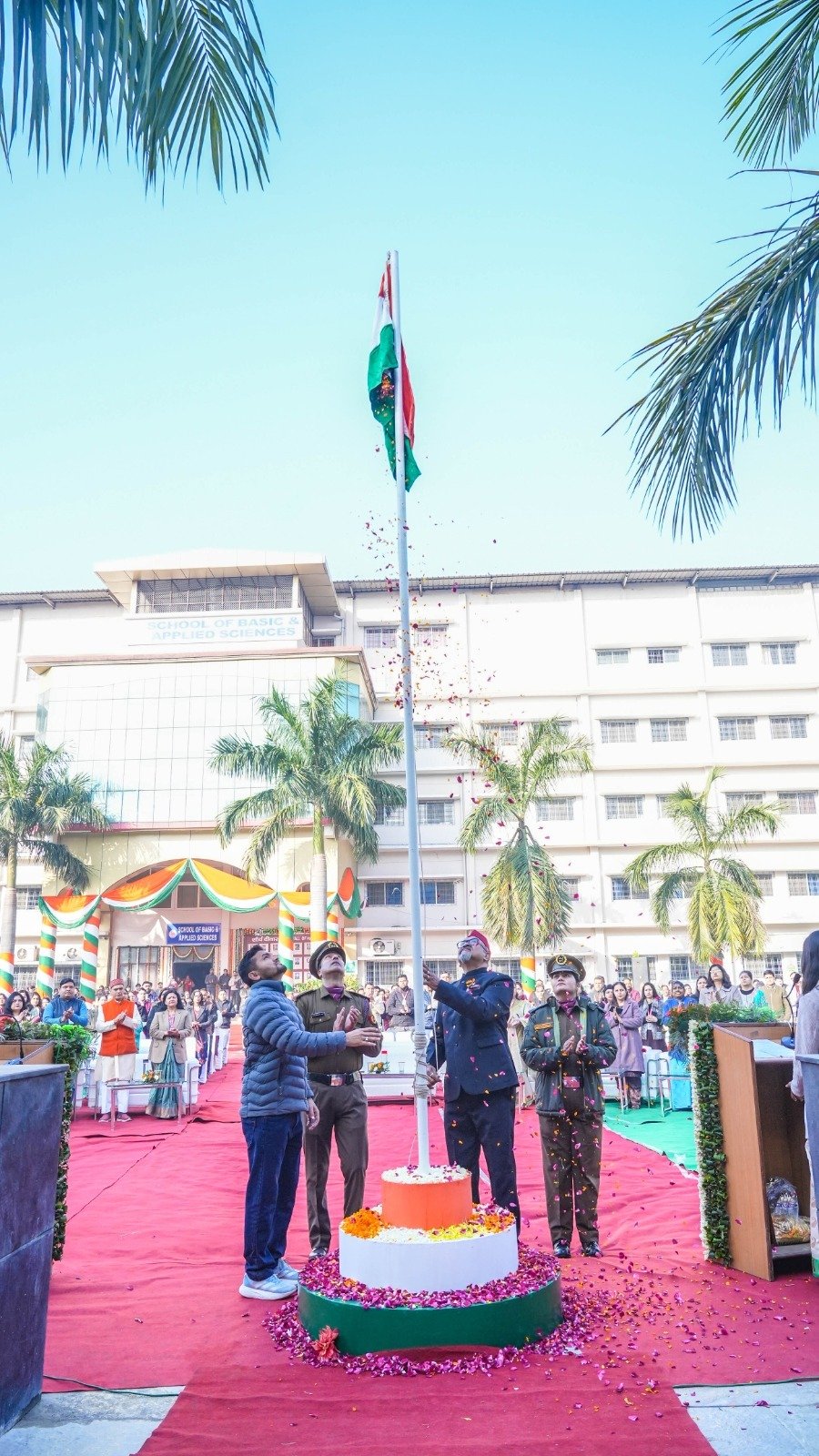 देहरादून। श्री गुरु राम राय विश्वविद्यालय (एसजीआरआरयू) सहित एसजीआरआर समूह के समस्त संस्थानों में देशभक्ति, राष्ट्र गौरव और भारतीय संविधान के प्रति आस्था का भव्य उत्सव देखने को मिला। दरबार श्री गुरु राम राय जी महाराज, एसजीआरआर विश्वविद्यालय एवं एसजीआरआर समूह के अन्य शिक्षण संस्थानों में राष्ट्रीय ध्वज पूरे सम्मान, आन-बान और शान के साथ फहराया गया।