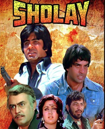 रमेश सिप्पी के निर्देशन में बनी शोले में अमिताभ बच्चन, धर्मेंद्र, संजीव कुमार, अमजद खान, जया बच्चन और हेमा मालिनी जैसे दिग्गज कलाकारों ने अभिनय किया। सलीम-जावेद द्वारा लिखी गई इस एक्शन-एडवेंचर फिल्म में वीरू और जय, दो अपराधी, सेवानिवृत्त पुलिस अधिकारी ठाकुर बलदेव सिंह के कहने पर कुख्यात डाकू गब्बर सिंह को पकड़ने निकलते हैं। बसंती और राधा के किरदार हेमा मालिनी और जया बच्चन ने निभाए, जबकि संगीत आरडी बर्मन ने दिया।