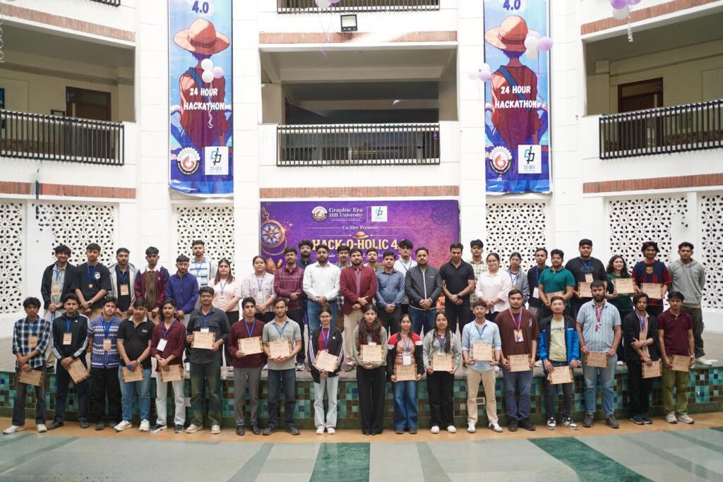 ग्राफिक एरा हिल यूनिवर्सिटी की 24 घंटे की हैकाथॉन में छात्र-छात्राओं ने मेहनत से कोडिंग कर एआई, एमएल, साइबर सिक्योरिटी, आईओटी, क्लाउड व ओपन इनोवेशन से जुड़ी विभिन्न समस्याओं के समाधान तराशे। हैकाथॉन प्रतियोगिता में टीम एरिजोन के (प्रिंस, युवराज, वंदना और आदर्श) ने एआई आधारित पोर्टेबल जीवन खोज प्रणाली को विकसित कर प्रथम स्थान हासिल किया। वहीं टीम एएसकोड (अदनान, आशुतोष, आदित्य और मीमंशा) ने प्रैक्टिकल कोडिंग का भविष्य पर समाधान प्रस्तुत कर दूसरा स्थान हासिल किया। इसके साथ ही टीम टेकएक्स (नेहा, आदित्य, आयुष और दिव्यम) ने महिलाओं की सुरक्षा के लिए एआई आधारित ऐप की रचना कर तीसरा स्थान हासिल कर नकद पुरस्कार जीते।