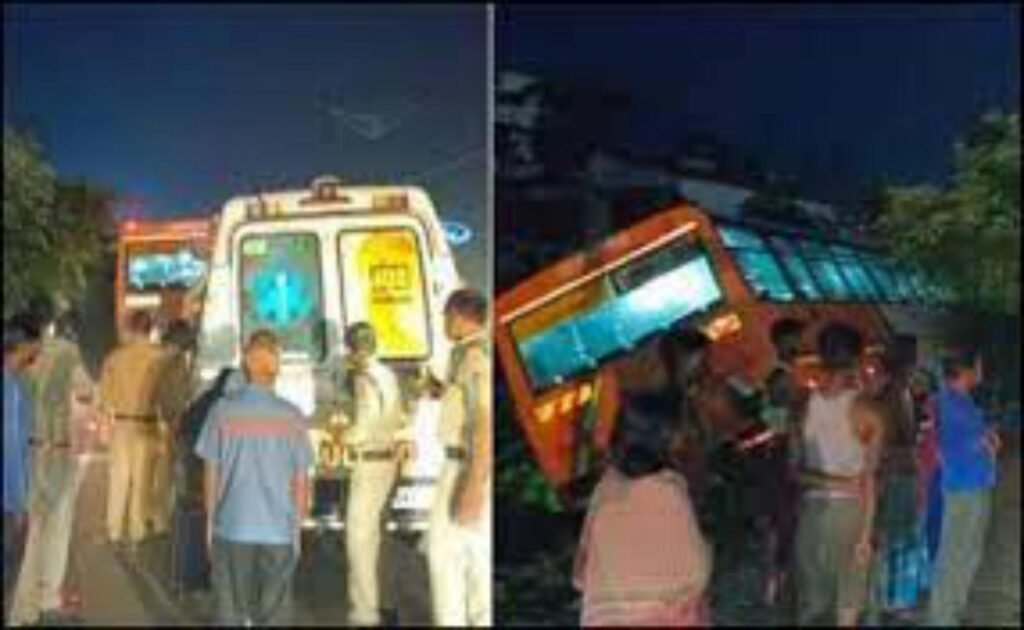 यूपी रोडवेज की बस हुई दुर्घटनाग्रस्त, दुर्घटना में एक सवारी और चालक को आई चोटें