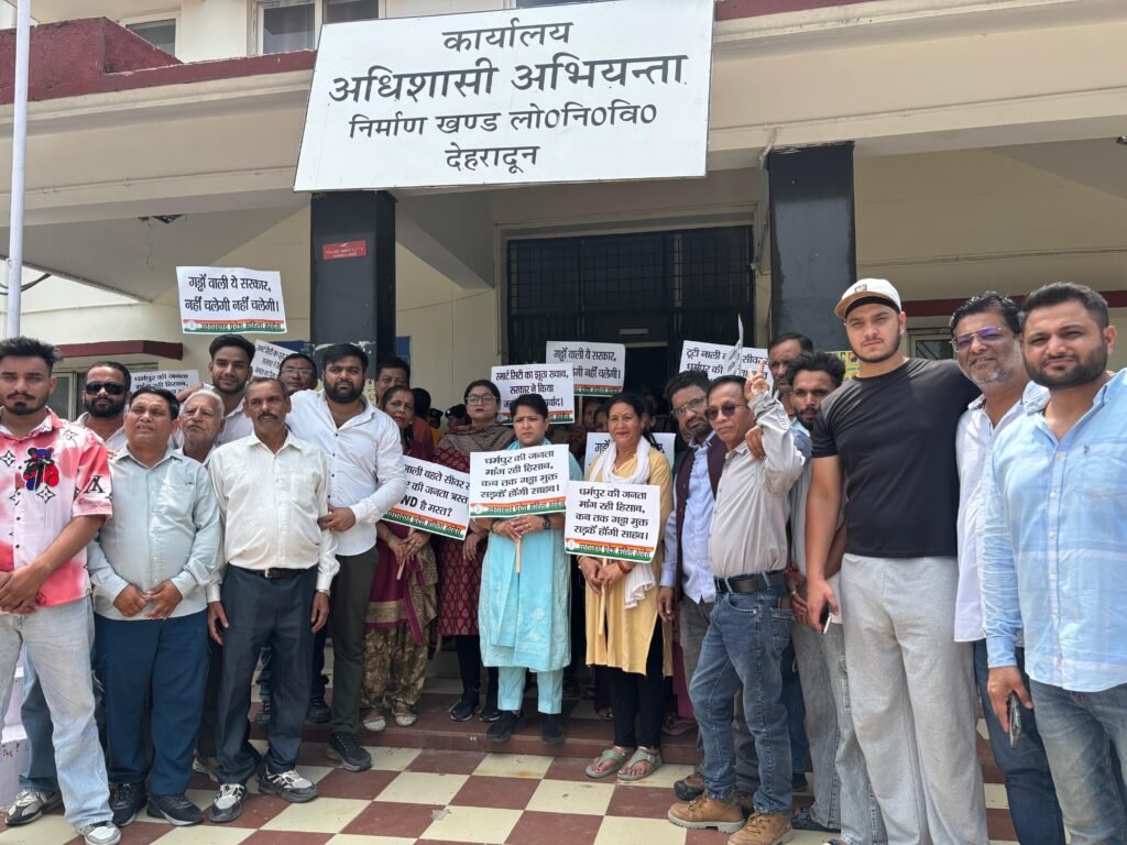महिला अध्यक्ष ज्योति रौतेला ने लोक निर्माण कार्यालय निकट कारगी कबाड़ी बाजार धर्मपुर का घेराव, तालाबंदी